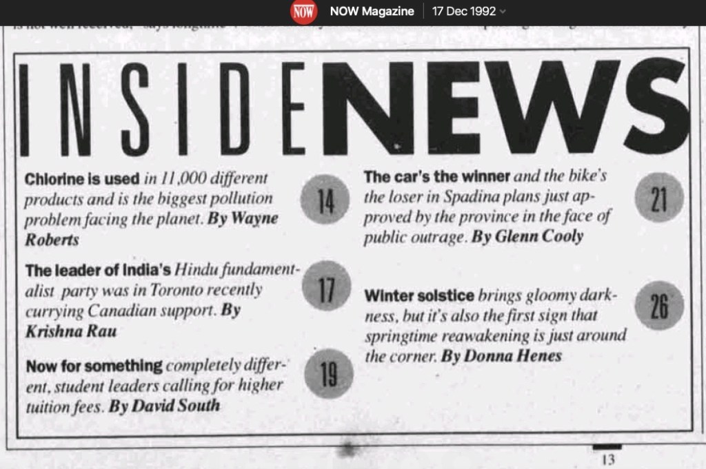 Now Magazine (Toronto, Canada), December 17-23, 1992