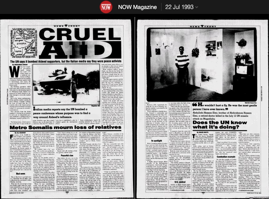 Some critics, such as George Cram of the Canadian Council for International Cooperation, an influential umbrella group for Canadian non-governmental organizations of NGOs, question if the obsession with Aideed isn’t just burying the UN in a deeper image problem with the Third World.