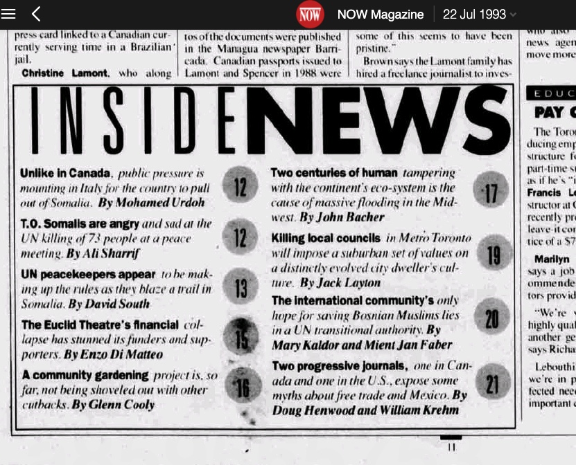 Now Magazine (Toronto, Canada), July 22-28, 1993