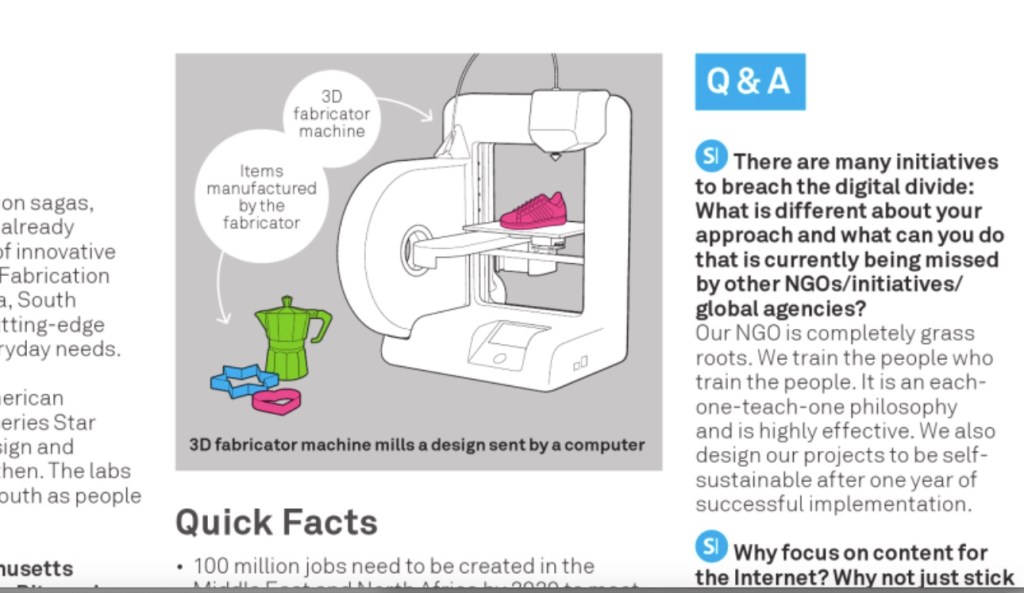 The Fab Labs project based at the Massachusetts Institute of Technology (MIT) has been at the forefront of pioneering and prototyping this technology, including running testing labs across the global South to prove the relevance of the technology to the world’s poorest communities.