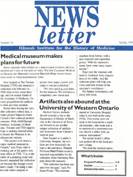 Hannah Institute For The History Of Medicine | 1992 – 1994