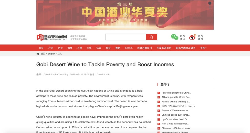 In the arid Gobi Desert spanning the two Asian nations of China and Mongolia is a bold attempt to make wine and reduce poverty. The environment is harsh, with temperatures swinging from sub-zero winter cold to sweltering summer heat. The desert is also home to high winds and notorious dust storms that plague China’s capital Beijing every year.