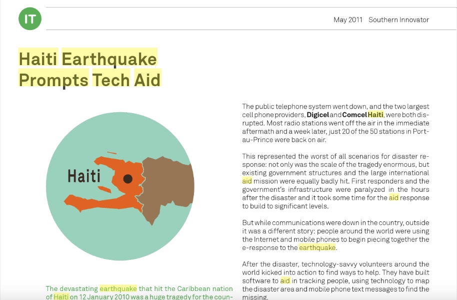 The devastating earthquake that hit the Caribbean nation of Haiti on January 12 was a huge tragedy for the country’s people and for the large international aid community, including the United Nations. But the disaster has seen the use of new information technologies – often assembled by volunteers – to bridge the gaps in critical information and bring a semblance of order to the chaos of a large disaster. And many of the technologies being used in Haiti now arose from past disasters and crises in the South.