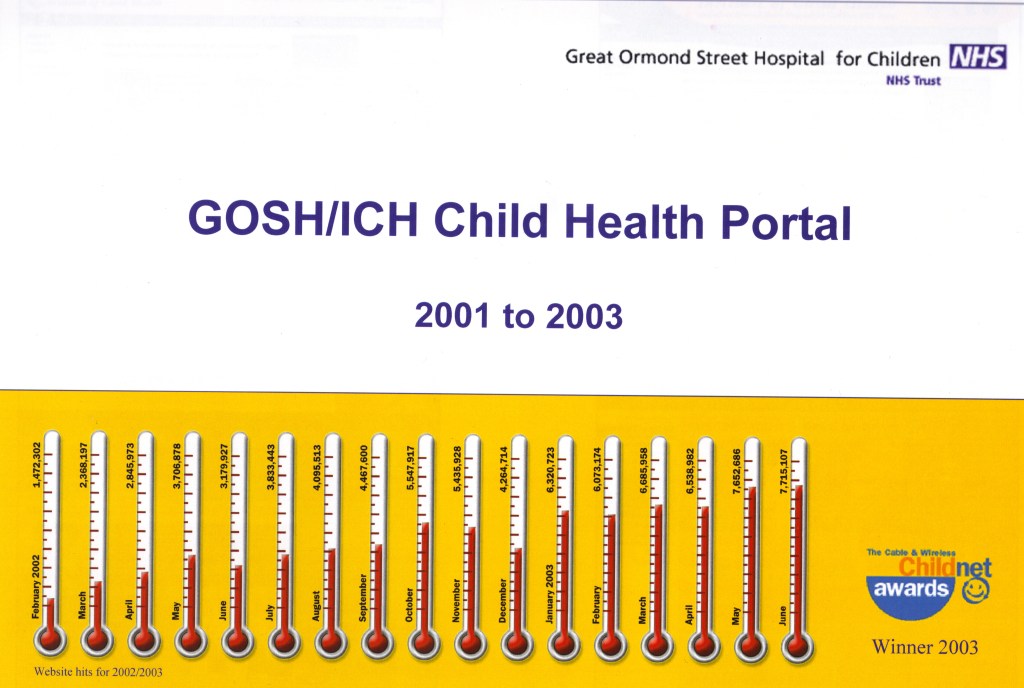 In 2001 I undertook a two-year contract to modernise the online resources for the Great Ormond Street Hospital for Children NHS Trust (GOSH)/Institute of Child Health (ICH). My strategy was inspired and informed by initiatives encountered while working as a health and medical journalist in 1990s Canada – a time where government austerity spurred a need to experiment and try new ways of doing things.