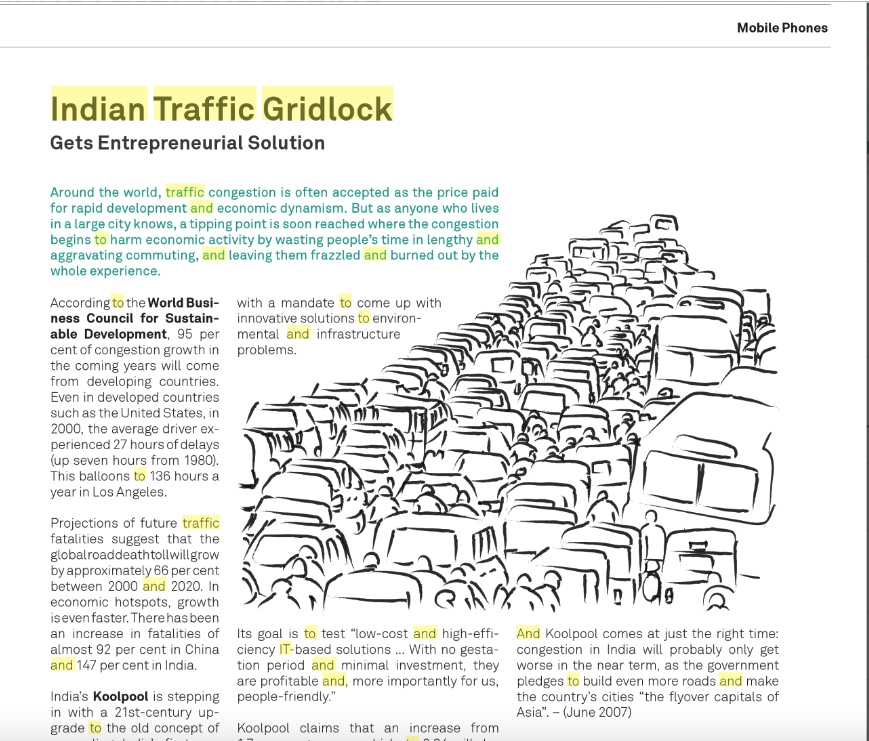 Koolpool surveyed Indian drivers and found that the average car only had two passengers. Koolpool is an idea from the Mumbai Environmental Social Network (MESN), a registered charity with the mandate to come up with innovative solutions to environmental and infrastructure problems. Its goal is to prove “low-cost and high efficiency IT-based solutions are the way of the future. With no gestation period and minimal investment, they are profitable and more importantly for us, people friendly.” Koolpool claims that an increase from 1.7 passengers per vehicle to 2.04 will decrease travel time and pollution levels by 25 percent. It also claims to be the first carpooling service to combine SMS text messaging and IT.