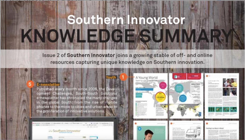 Development Challenges, South-South Solutions was launched as an e-newsletter in 2006 by UNDP’s South-South Cooperation Unit (now the United Nations Office for South-South Cooperation) based in New York, USA. It led on profiling the rise of the global South as an economic powerhouse and was one of the first regular publications to champion the global South’s innovators, entrepreneurs, and pioneers. It tracked the key trends that are now so profoundly reshaping how development is seen and done. This includes the rapid take-up of mobile phones and information technology in the global South (as profiled in the first issue of magazine Southern Innovator), the move to becoming a majority urban world, a growing global innovator culture, and the plethora of solutions being developed in the global South to tackle its problems and improve living conditions and boost human development. The success of the e-newsletter led to the launch of the magazine Southern Innovator.
