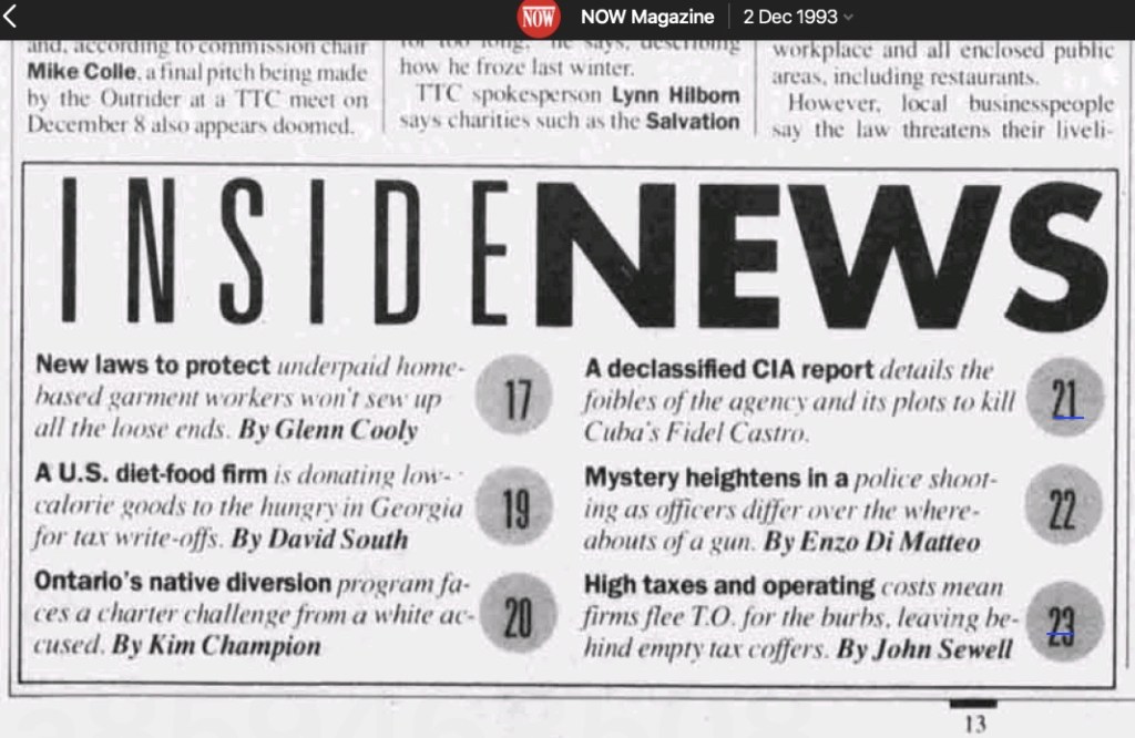 Now Magazine (Toronto, Canada), December 2-8, 1993