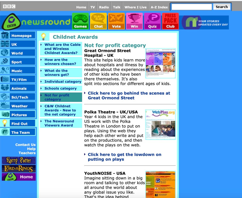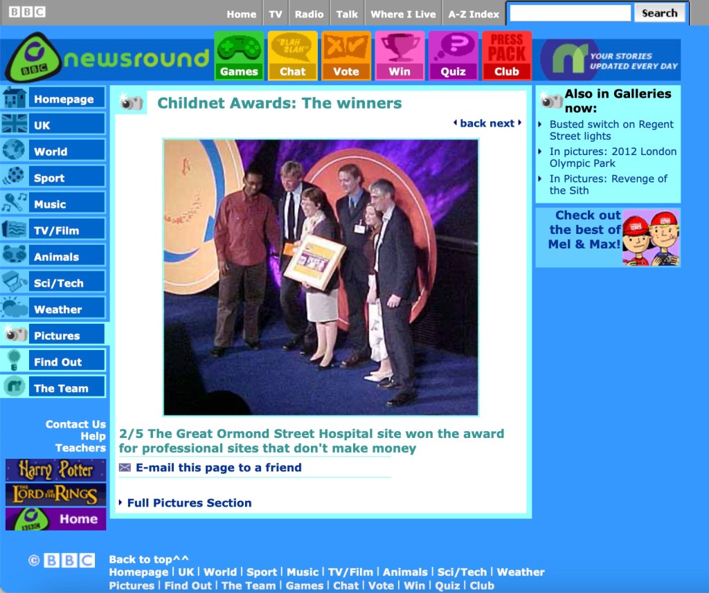 The GOSH Child Health Portal team receive the Childnet Award in 2003 at London’s Science Museum (Photo: CBBC Newsround).