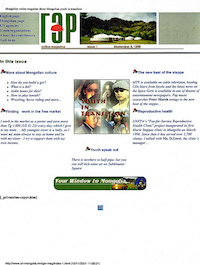Ger Magazine was launched on September 9, 1998 (Ger is the Mongolian word for both the traditional tent dwelling and home). The theme of youth in the transition was explored by a combined team of Mongolian and foreign journalists. The Ger Magazine project had basically three goals: first, raise the quality of journalism in the country, secondly, introduce the country to a wider global audience and, thirdly, by being the country’s first online magazine, prove the Internet was an effective way to communicate.