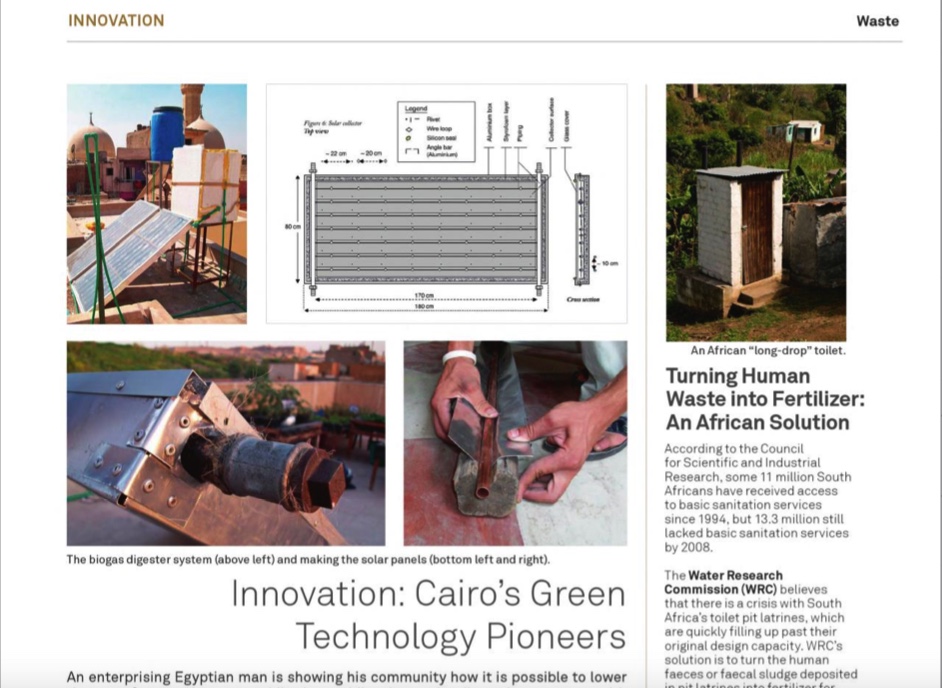Fathy has been developing the biogas digester with the NGO Solar Cities (http://solarcities.blogspot.com), which provides designs, technical advice and support to Cairo citizens keen to embrace green technologies.