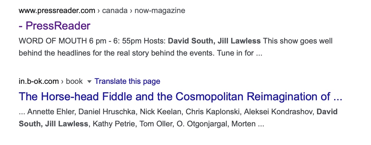 CKLN-FM’s “Word of Mouth 6 pm-6:55 pm Hosts: David South, Jill Lawless This show goes well behind the headlines for the real story behind the events.”