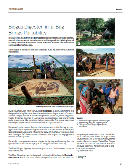 3) China boasts a fast-growing biogas economy using farm waste. Here is a full summary of their experience. Website: http://www.i-sis.org.uk/BiogasChina.php.