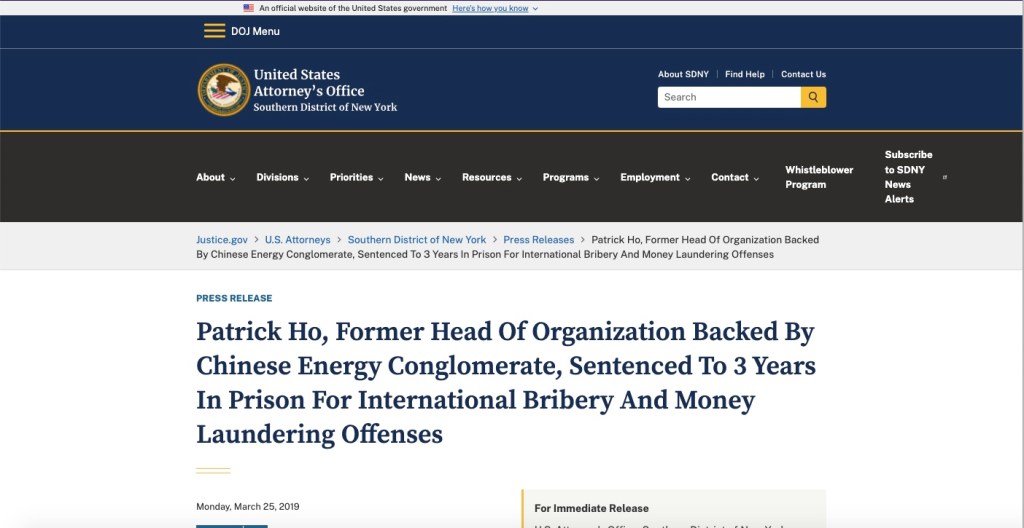 “Corruption at any level of government undermines the rule of law and cannot be tolerated. But corruption is especially corrosive when it occurs at an international body like the United Nations. By paying bribes to two U.N. ambassadors to advance his interest in obtaining formal support for the Macau conference center project, Ng Lap Seng tried to manipulate the functions of the United Nations. The sentence handed down today demonstrates that those who engage in corruption will pay a heavy price and serves as a reminder that no one stands above the law.”, Acting Assistant General John P. Cronan, May 2018