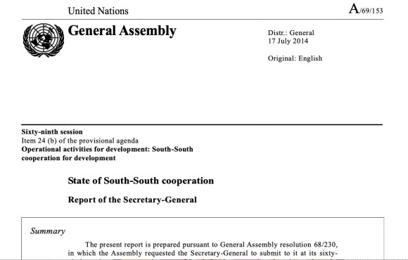 United Nations General Assembly: Sixty-ninth session, Item 24 (b) of the provisional agenda, Operational activities for development: South-South cooperation for development, 17 July 2014.The research informing Southern Innovator Magazine played a part in the formulation of the UN’s post-2015 development agenda, including the Sustainable Development Goals (SDGs).