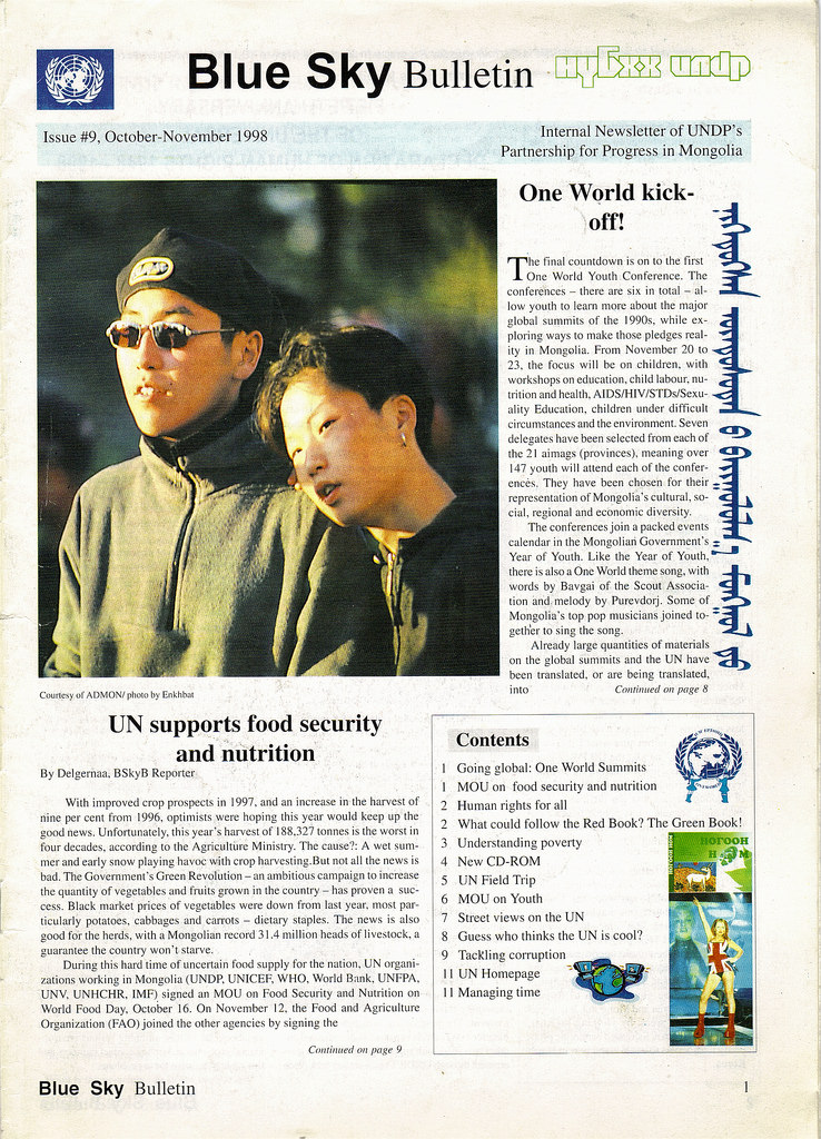 Archived issues of the magazine can be found at the Wayback Machine here: https://archive.org/. Just type in the UN Mongolia website address for the years 1997 to 1999: http://www.un-mongolia.mn.