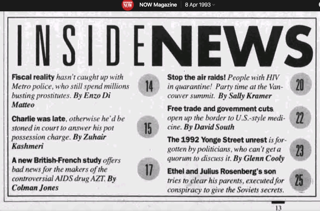 Now Magazine (Toronto, Canada), April 8-14, 1993.