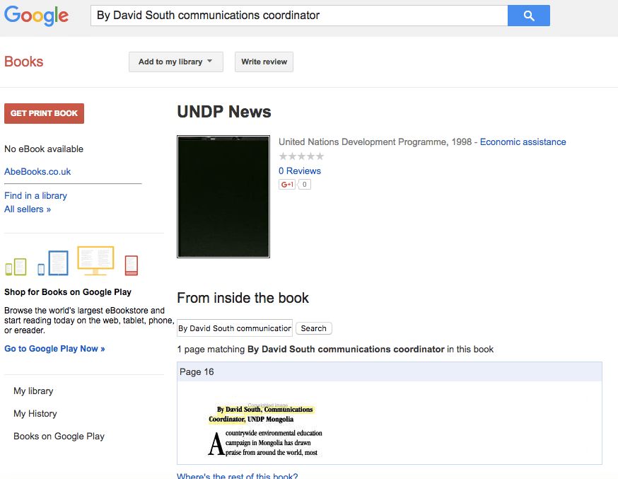 In this role, I pioneered innovative use of the Internet and digital resources to communicate the UN’s work and Mongolia’s unfolding crises. The UN called this work a “role model” for the wider UN and country offices. A survey of United Nations country office websites in 2000 ranked the UN Mongolia website I launched in 1997 and oversaw for two years (1997-1999), third best in the world, saying: “A UN System site. A very nice, complete, professional site. Lots of information, easily accessible and well laid out. The information is comprehensive and up-to-date. This is a model of what a UNDP CO web site should be.” (http://www.scribd.com/doc/274319690/UNDP-Mongolia-United-Nations-2000-Survey-of-Country-Office-Websites)