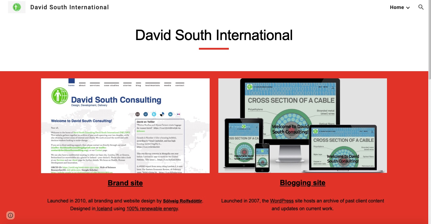 Develop and launch the new branding for David South Consulting and its website, davidsouthconsulting.com, all designed by Solveig Rolfsdottir.