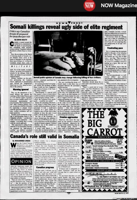 Now Magazine (Toronto, Canada), July 22-28, 1993. This incident was the basis of the 2001 film Black Hawk Down.