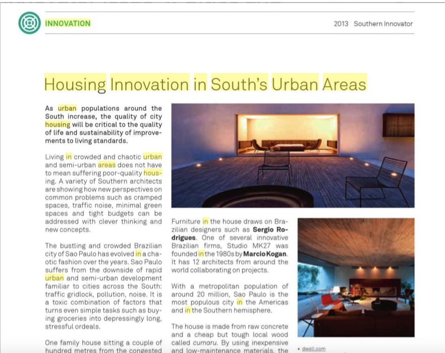 Living in crowded and chaotic urban and semi-urban areas does not have to mean suffering poor quality housing. A variety of Southern architects are showing how new perspectives on common problems like cramped spaces, traffic noise, minimal green spaces and tight budgets can be addressed with clever thinking and new concepts.